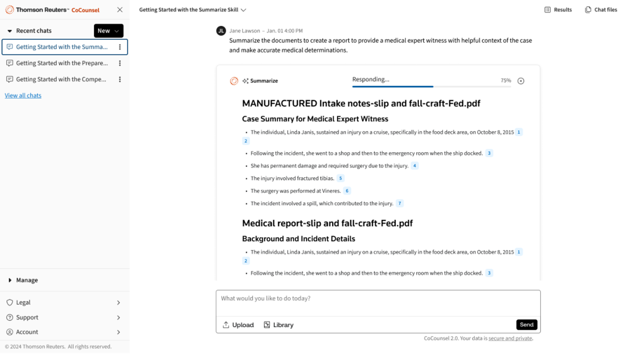 - Rely on CoCounsel to capture every step and every detail, revealing key links and powerful insights you might otherwise miss.