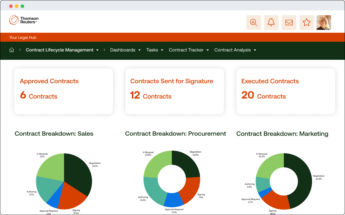 Built-in dashboards make it easy to visualise key contract KPIs and optimise decision-making across your legal department.