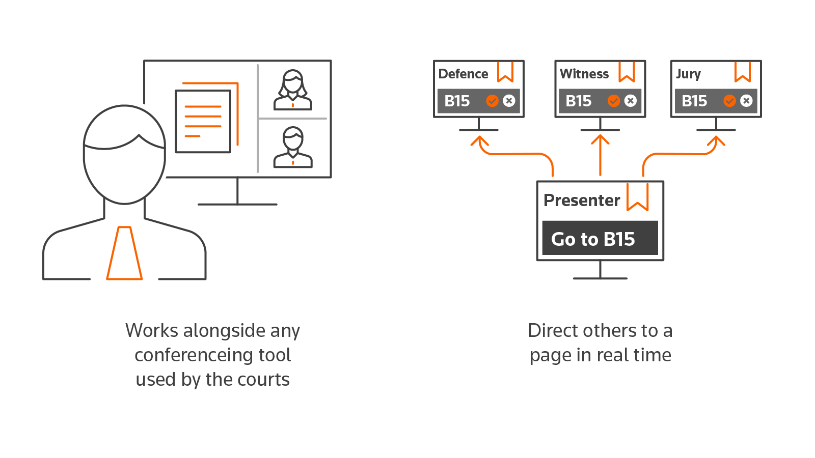 A full suite of state-of-the-art tools to present evidence within the court, hybrid or remote hearings.