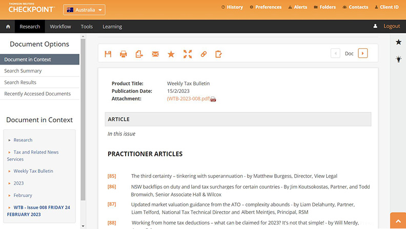 The team of experienced tax writers at Thomson Reuters can provide you with greater insights through commentary and analysis in the Weekly Tax Bulletin and other specialised newsletters covering superannuation, trusts, FBT and more.