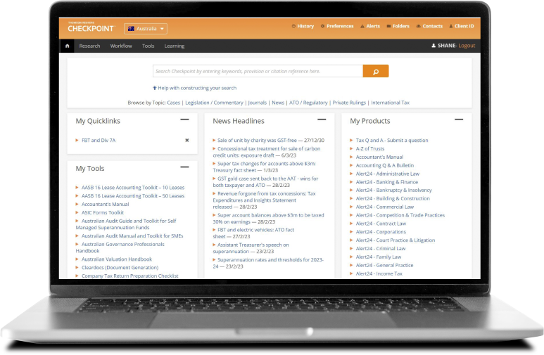 You can rely on Checkpoint’s tax research tools to deliver expert commentary explaining the practical implications of Australia’s laws and standards in relation to tax, accounting, superannuation and more.