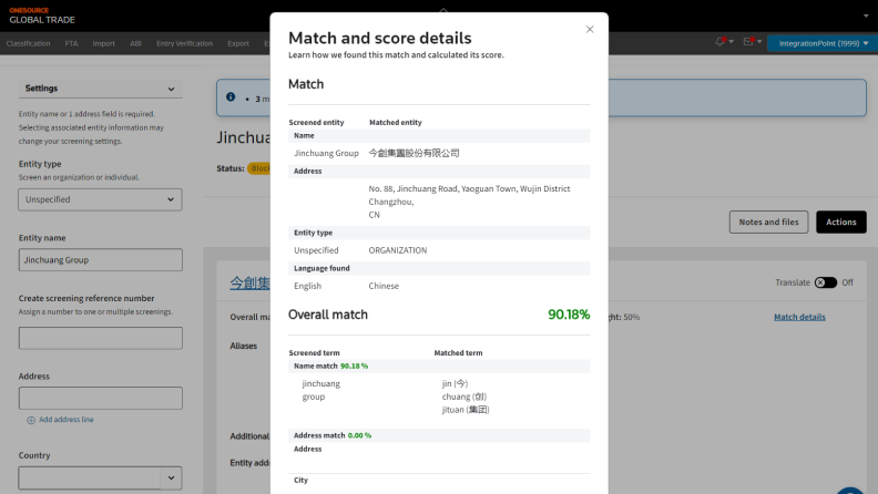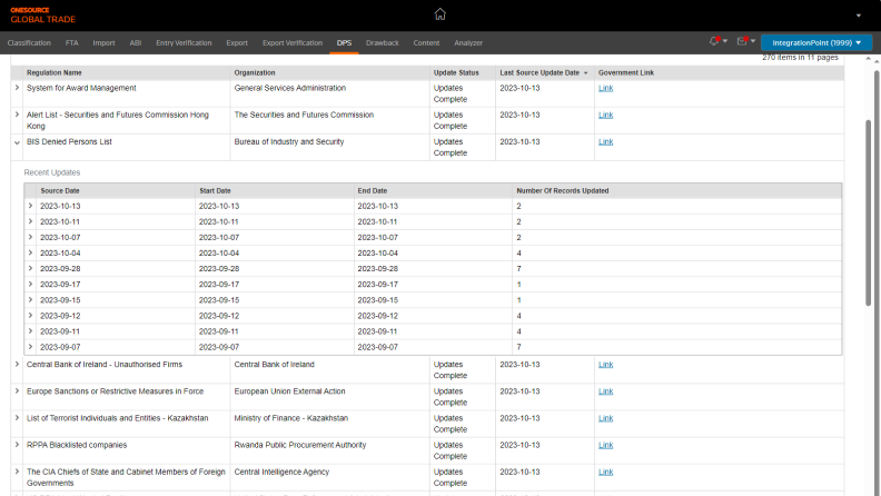 ONESOURCE Denied Party Screening features