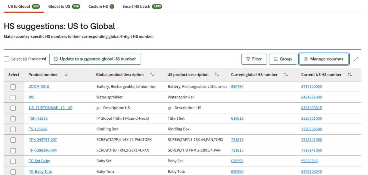 Automatically compare unique information, such as product attributes, weights, measures, trademarks, Chemical Abstracts Service (CAS) codes, etc., with the WCO Harmonised System (HS) database — which contains more than 5,000 products — to link the product to its correct HS number accurately.