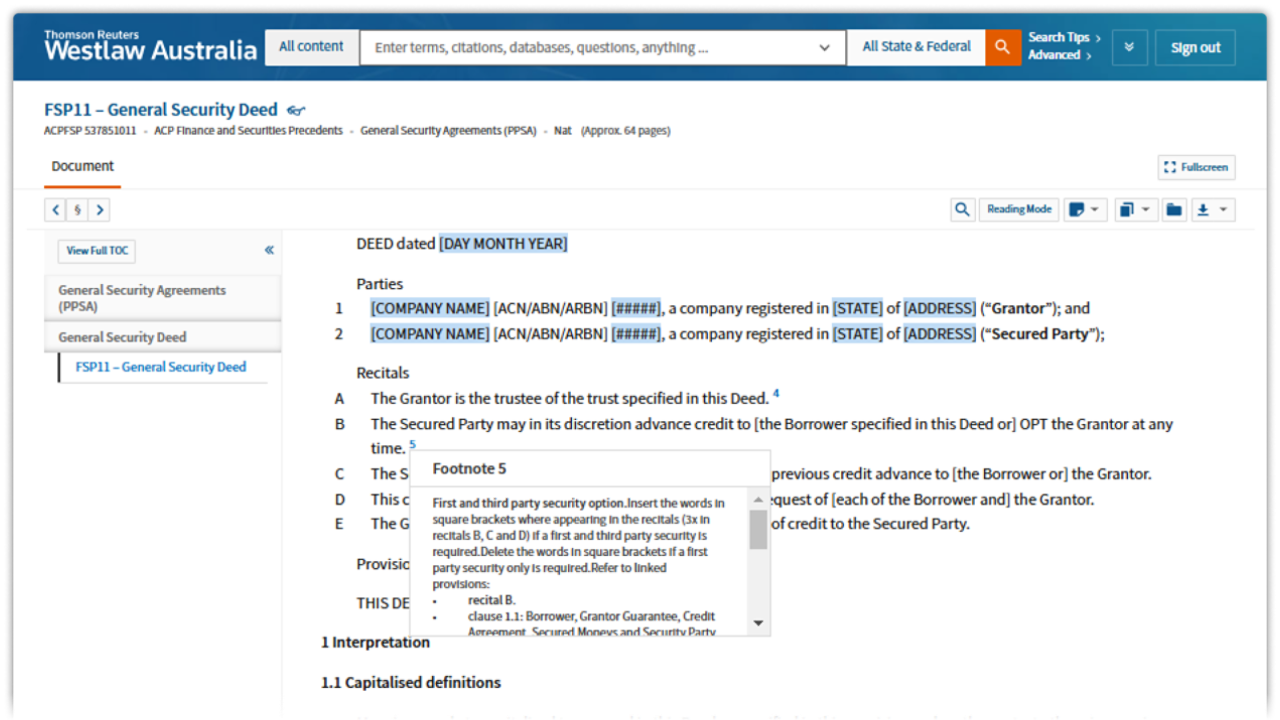 Whether you need current precedents for various types of security arrangements incorporating PPSA application or NSW and Victoria specific precedents, download Word files, complete with drafting notes to give yourself a head start.